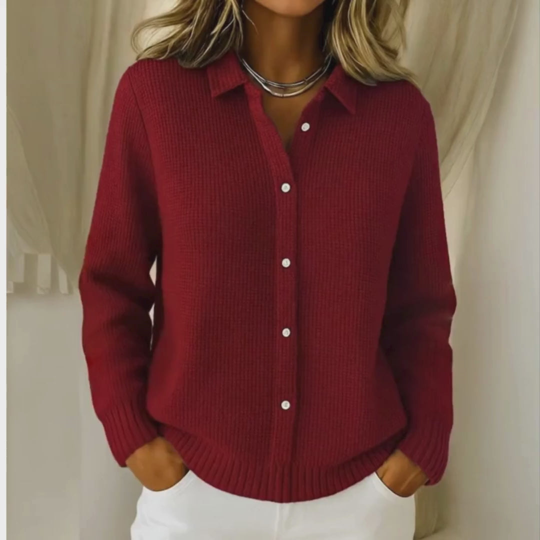 ✨ Tidlös elegans med krage Den fina kragen och knappraden ger genast ett mer sofistikerat intryck än en vanlig tröja. Det är "vardagsfin" på ett enkelt sätt.